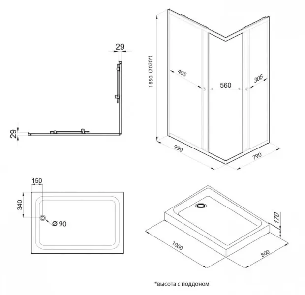 Душевой уголок Размер: 100 x 80 x 185 см Высота с поддоном: 202 см Конструкция двере... Подробнее