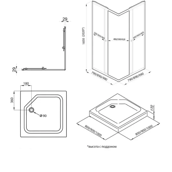 • Размеры: 90х90х185