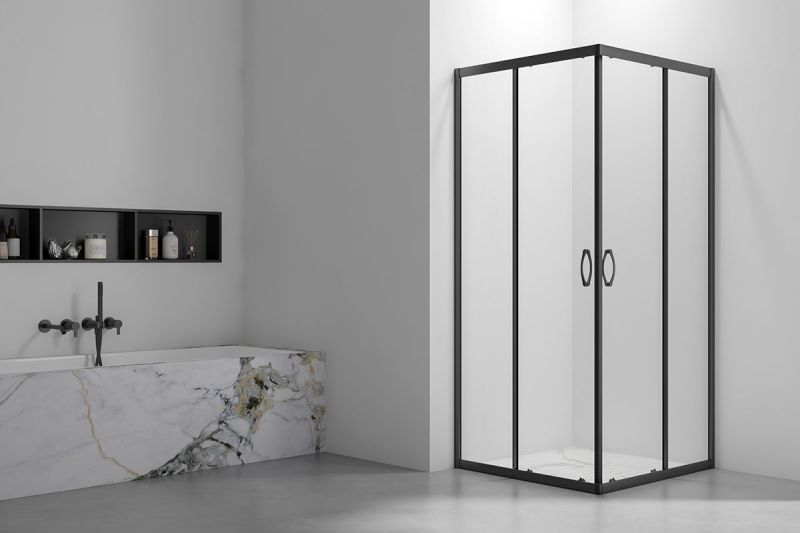 Душевой уголок Veconi Rovigo RV-101B, 800x800x1900, черный, стекло прозрачное купить