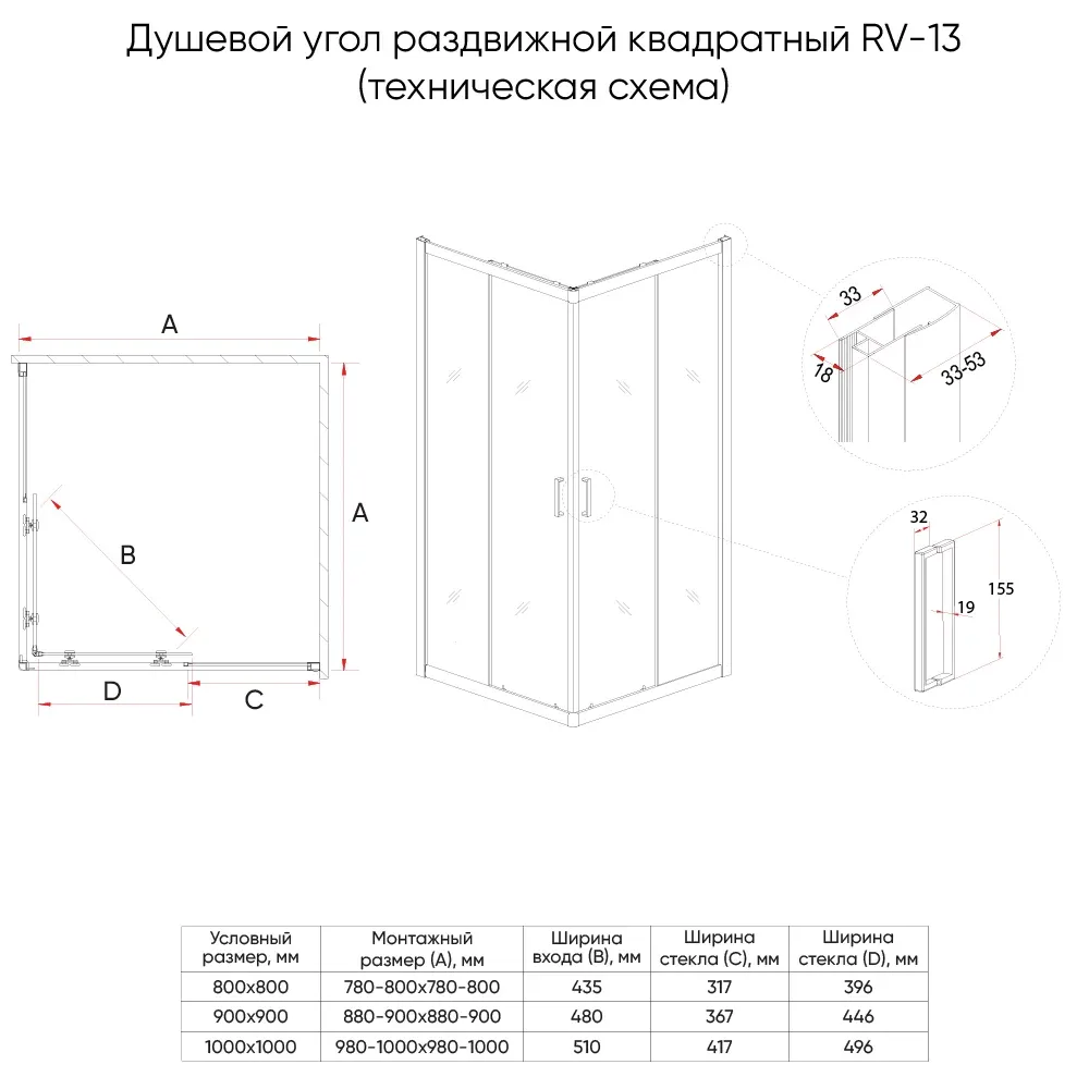 Душевой уголок Veconi Rovigo RV-13, 1000x1000x1950, черный, стекло прозрачное купить