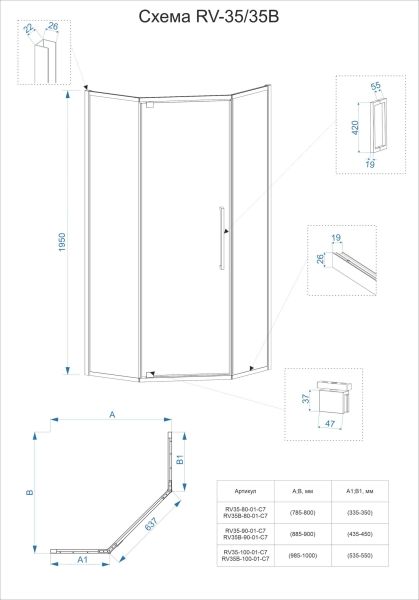 Душевой уголок Veconi Rovigo RV-35, 800х800х1950, хром, прозрачное стекло