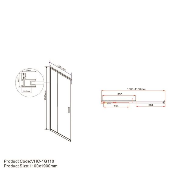 Дверь для душевого уголка Garda VHC-1G110CLB, черный, стекло прозрачное, VHC-1G110CLB