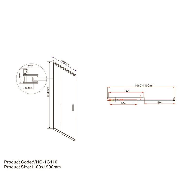 Дверь для душевого уголка Garda VHC-1G110CL, хром, стекло прозрачное, VHC-1G110CL