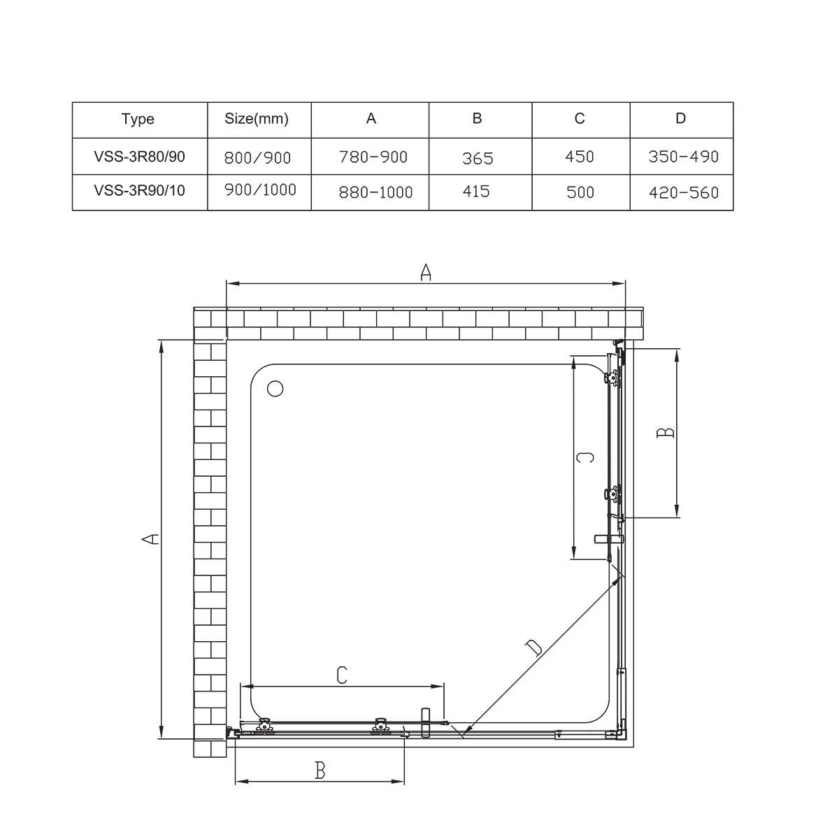 Душевой уголок Vincea Rapid VSS-3R90/10MT 90/100x90/100 смСерия: