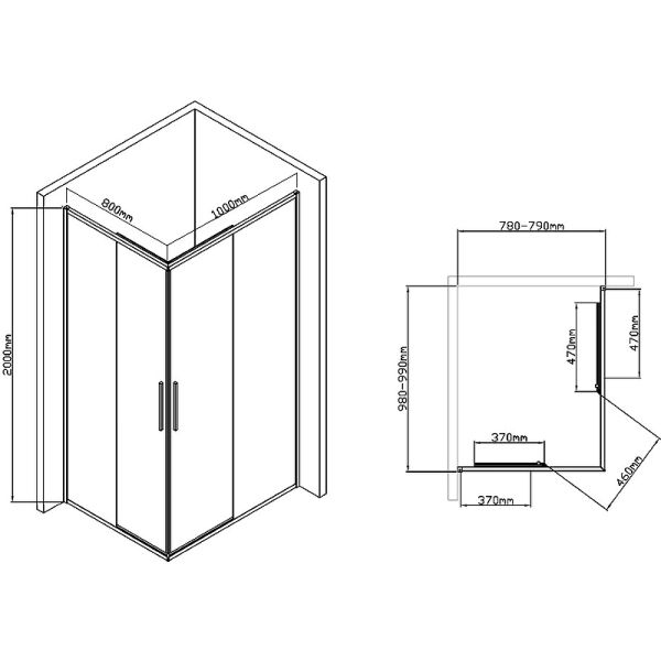Размеры (ШхВхД): 1000x2000х800 мм.