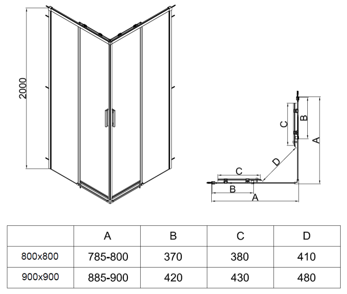 Душевой уголок Vincea Soft 2 VSS-3SO2800CLB, 800*800, черный, стекло прозрачное