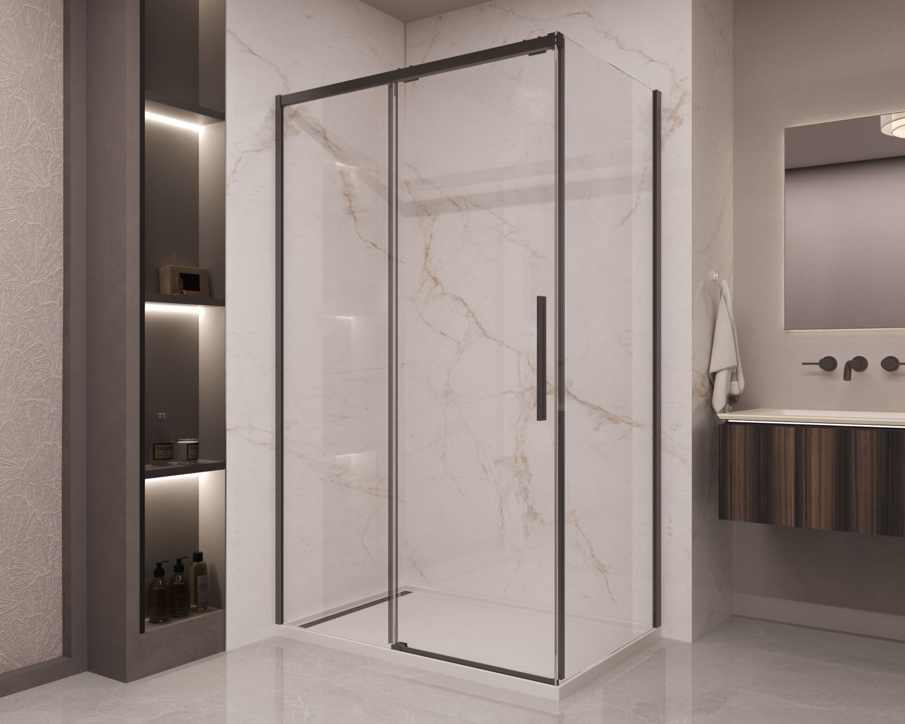 Душевой уголок Vincea Stella VSR-1ST9011CLB, 1100*900, черный, стекло прозрачное