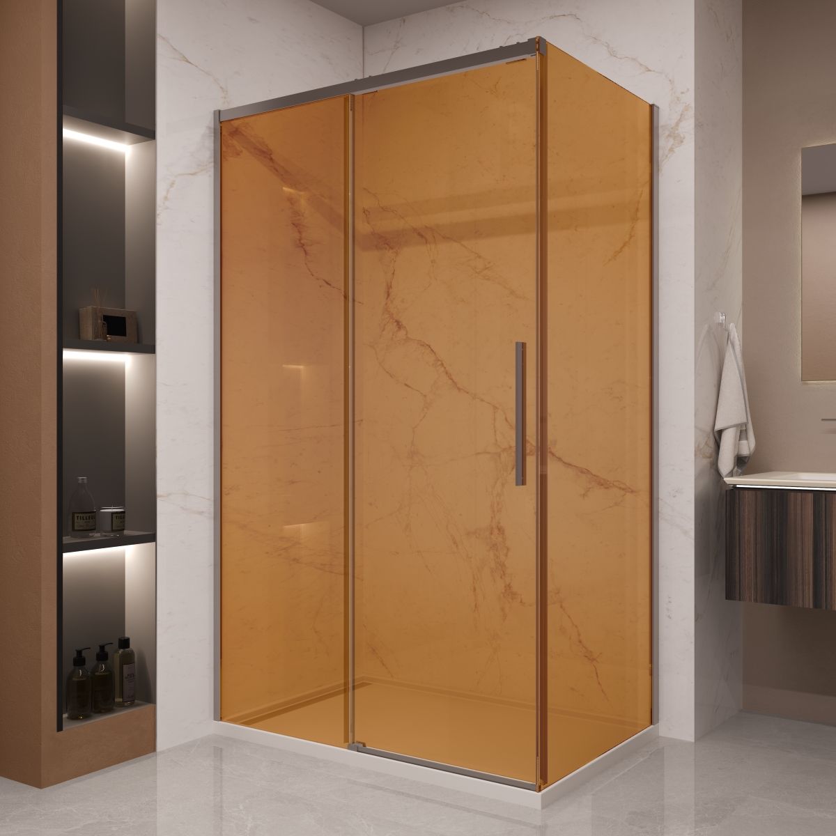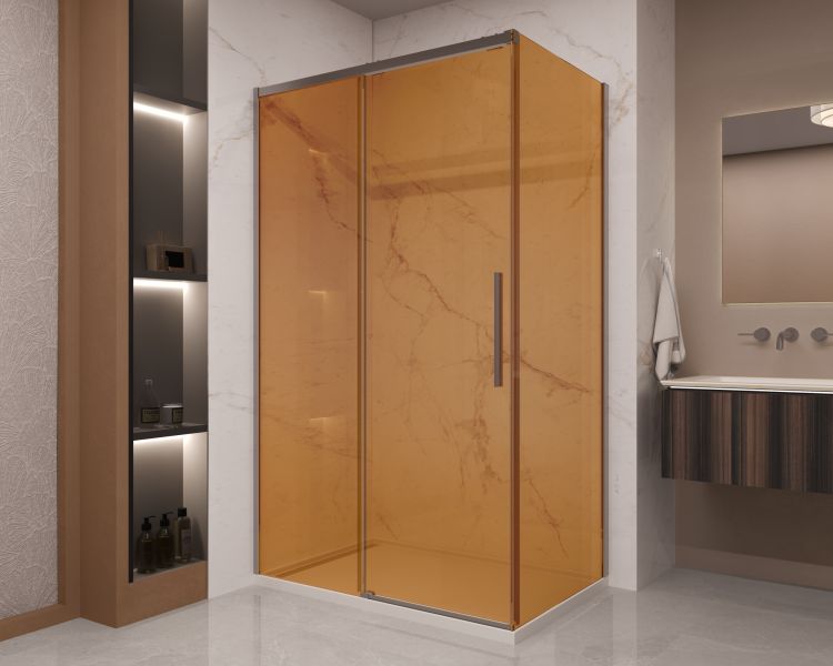 Душевой уголок Vincea Stella VSR-1ST9012GSGM, 1200*900, вороненая сталь, стекло янтарь