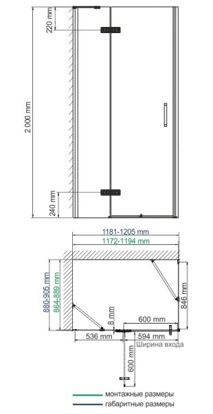 Душевой уголок Wasserkraft Aller 10H07RBLACK 120x90 правый