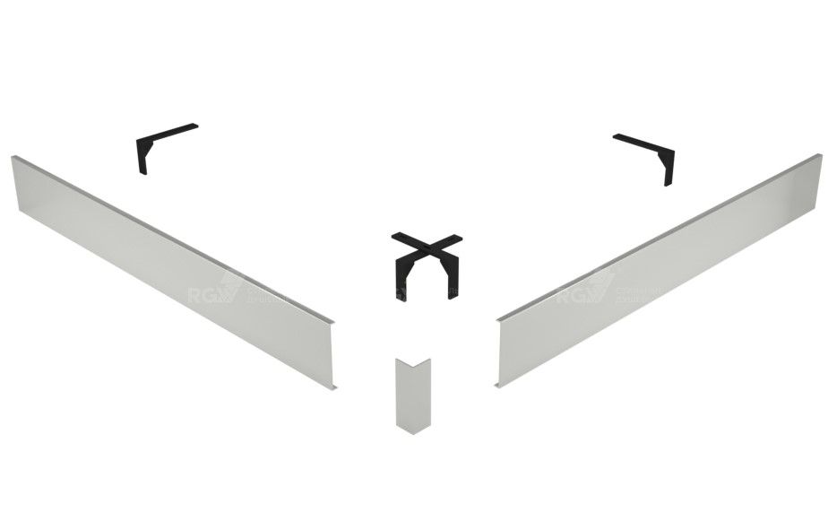 Комплектация: 2 экрана (фронтальный и боковой), соединительный уголок, крепление к ножкам на которые устанавливается поддон.