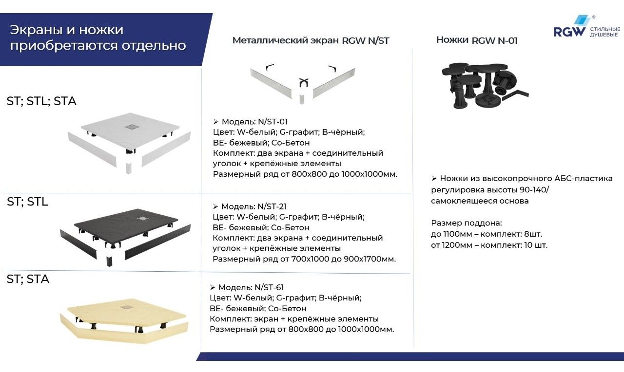 • Комплект из 10 шт. Ножки для поддона RGW N-10 Черные 03230111-31 (для поддонов длиной от 1200 мм включительно).