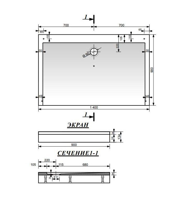 - Размеры: 1400х900х100 см