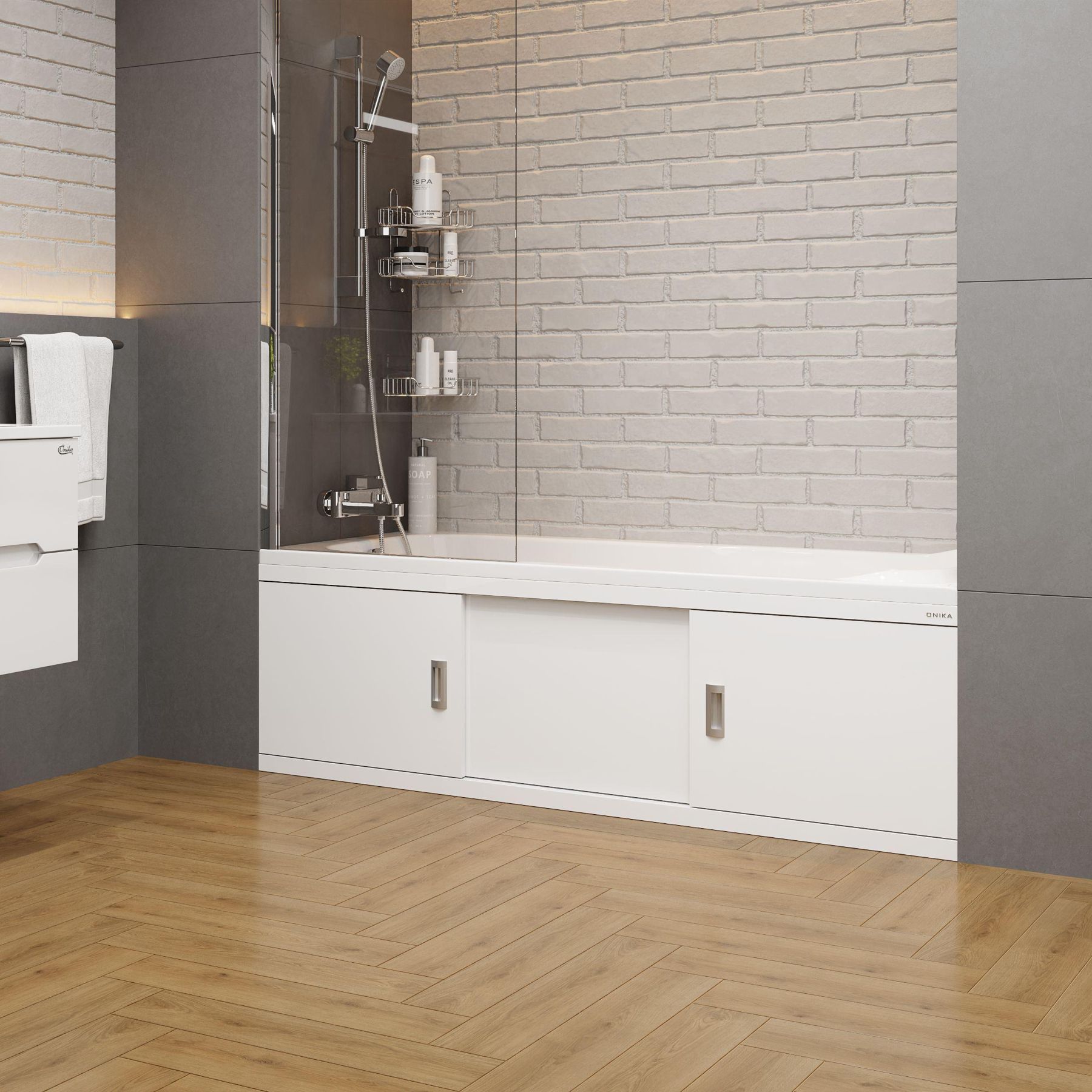 Экран Onika обладает повышенной износостойкостью, отлично переносит эксплуатацию в помещении с высокой влажностью и хорошо сочетается с любыми ваннами.