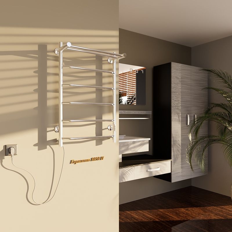 Электрический полотенцесушитель Altasan Горизонт П Горизонт8050П с полкой Хром 80х50Данный полотенцесушитель имеет два вида подключения: подключение стандартным кабелем с вилкой 220 Вольт и скрытое подключение к заранее подведенной на месте установки проводке. Во втором случае необходимо обжать жилы проводки дополнительными клемниками (идут в комплекте) и подсоединить их к жилам полотенцесушителя, согласно цветовой разметки. Подключение можно осуществить, как по левой стороне, так и по правой (имеются соответствующие отводы на каждой из вертикальных труб).