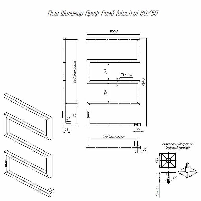 Электрический полотенцесушитель Altasan ШалимарПроф ШалимарПроф8050ЧМ Черный муар 80х50 купить