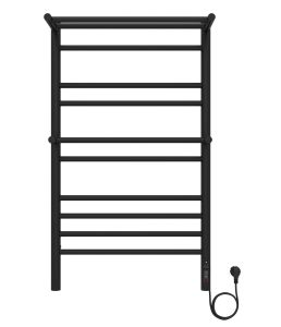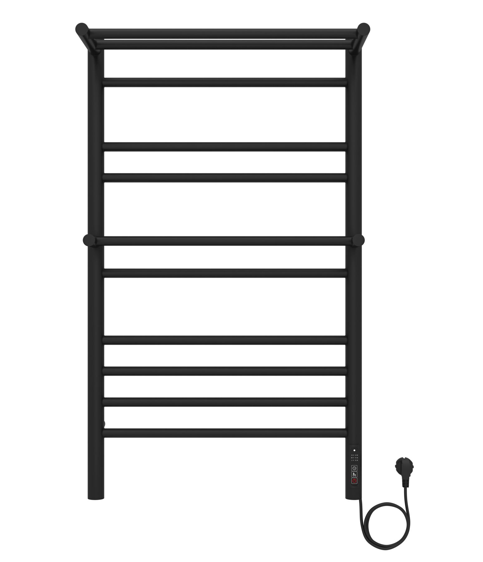 Полотенцесушитель электрический Aquatek (Акватек) Альфа П10 500х900 мм, с полкой, черный муар, подключение скрытое к сети электропитания / электропровод с вилкой, с терморегулятором и таймером quick touch, нержавеющая сталь AISI 201, гарантия 5 летХарактеристики:32х18,ВСТРОЕННЫЙ ДИММЕРКомплектация:полотенцесушитель;
