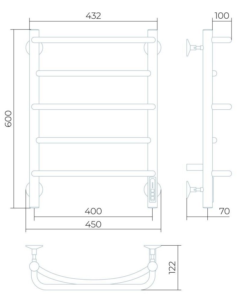 Заглушки на концах стоек, тип диммера - кнопочный (Quick Touch), крепления к стене.