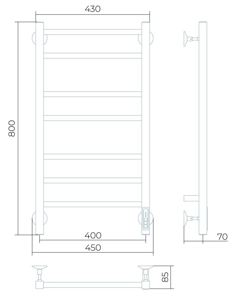 Заглушки на концах стоек, тип диммера - кнопочный (Quick Touch), крепления к стене.
