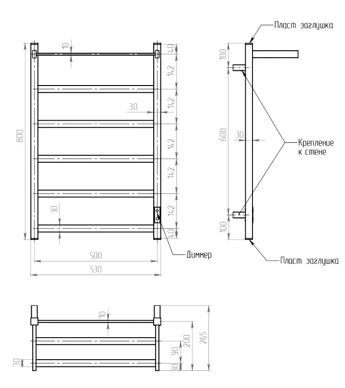 Полотенцесушитель сухого типа с нагревательным кабелем