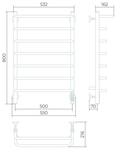 Электрический полотенцесушитель Larusso Стандарт П7 50x80см с полкой белый матовый 4670078536594