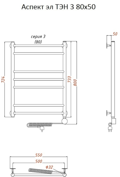 Электрический полотенцесушитель Тругор Аспект 3 80x50см хром Аспект3/элТЭН8050
