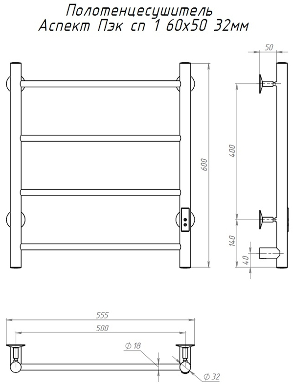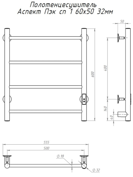 Электрический полотенцесушитель Тругор Аспект Пэк сп 1 60x50см хром АспектПэксп1/605032