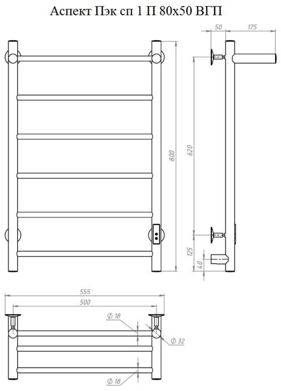 ПЭК — Полотенцесушитель электрический кабельный. Изделие производится из углеродистой стали. Вертикальные трубы d -32 мм., для горизонтальных вставок используется труба d — 18 мм.Нагревательным элементом в полотенцесушителе является греющий кабель — аналог «теплого пола», кабель заправляется внутрь каждой трубы и передает тепло на поверхность изделия. Во включенном состоянии постоянно поддерживается температура 50-600. Экономичность: Полотенцесушитель снабжен панелью управления. Кнопка включения/выключения и таймер на 2 / 4 / 6 часов , который позволяет включать изделие на ограниченное время. Эта функция дает возможность экономить электричество.Мощность электрического прибора порядка 60W при стоимости 1 кВт — 5 руб несложно посчитать: 60W х 24 = 1,5 кВт в сутки. Стоимость эксплуатации изделия за сутки 1,5 кВт х 5 руб. = 7,5 руб. Максимальный расход электричества за месяц примерно 225 руб. При условии если сушка работает круглосуточно.Удобство монтажа: Полотенцесушитель крепится к стене на четыре держателя. Универсальное исполнение изделия позволяет подключить его, как справа, так и слева.Скрытое подключение: Благодаря приваренным в нижней части вертикальных труб двум распаячным коробкам, в которых соединяется электропроводка, возможно скрытое подключение к электричеству слева и справа.Подключение в розетку: В комплекте также имеется шнур с вилкой, который будет необходим при подключении к розетке.Панель включения:РЕЖИМ №1 — работа в течение 2 часов с последующим отключением.РЕЖИМ №2 — работа в течение 4 часов с последующим отключением.РЕЖИМ №3 — работа в течение 6 часов с последующим отключением.Терморегулятор: 40 / 50 / 60 градусов