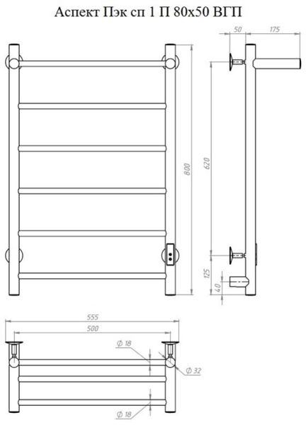 Электрический полотенцесушитель Тругор Аспект Пэк сп 1 П с полкой 80x50см белый АспектПэксп1П/8050белВГП