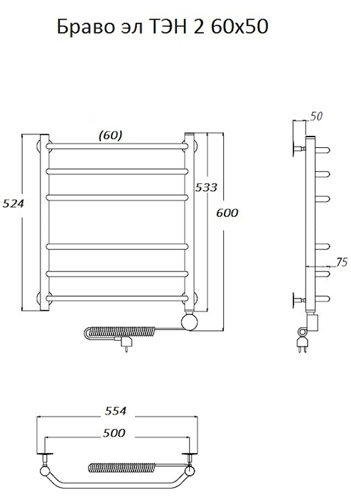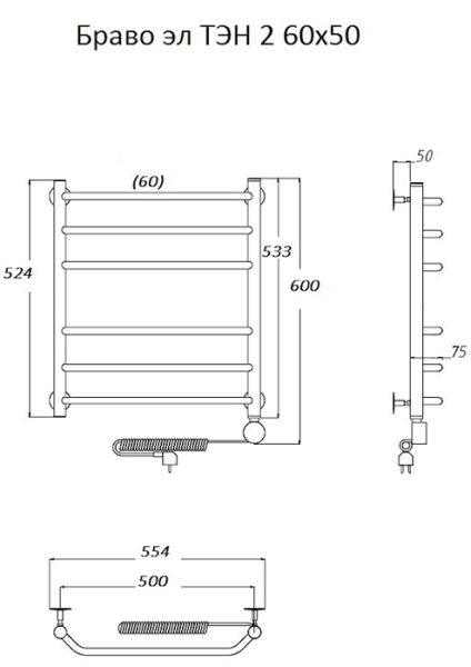 Электрический полотенцесушитель Тругор Браво 2 60x50см хром Браво2/элТЭН6050