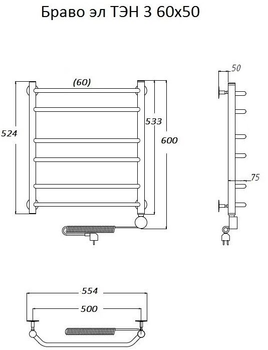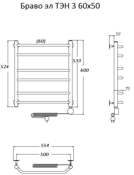 Электрический полотенцесушитель Тругор Браво 3 60x50см хром Браво3/элТЭН6050