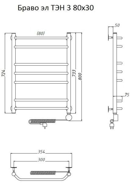 Электрический полотенцесушитель Тругор Браво 3 80x30см хром Браво3/элТЭН8030 купить