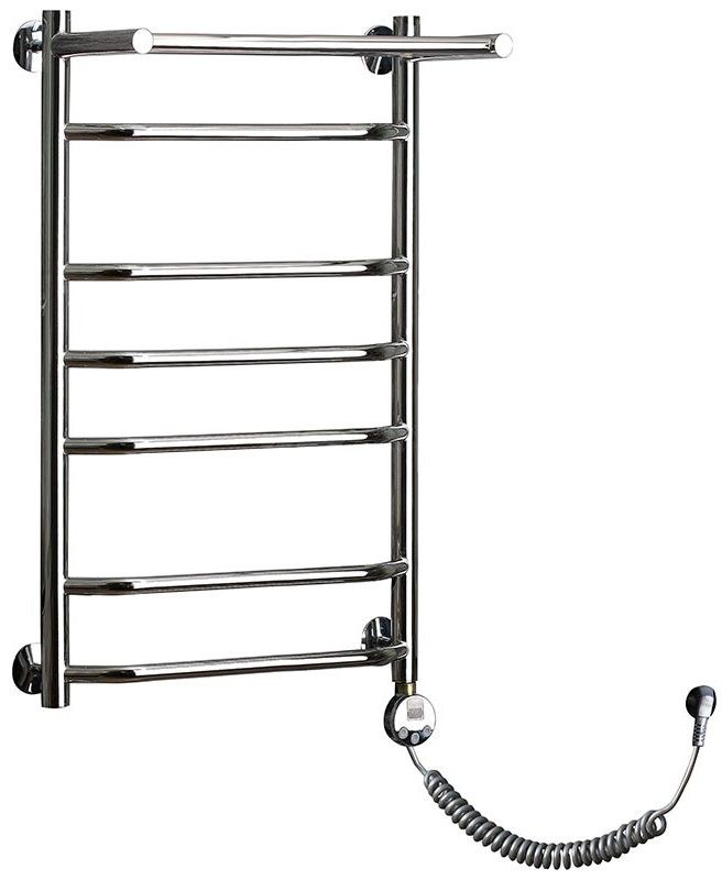 Внимание! Для скрытого монтажа электропроводки необходимо приобрести комплект скрытого подключения. Полотенцесушитель электрический комплектуется ТЭНом с терморегулятором и таймером. Изделие производится из нержавеющей стали AISI 201. Вертикальные трубы d -32 мм., для горизонтальных вставок используется труба d — 18 мм. Нагревательным элементом в полотенцесушителе является ТЭН. Полотенцесушитель заполнен бытовым антифризом.Экономичность: ТЭН нагревает антифриз до нужной температуры и выключается, далее при остывании полотенцесушителя он включается опять. Таким образом он работает не постоянно, и получается, что ТЭН потребляет электричество не 300 Вт, а порядка 100 — 150 Вт.Мощность электрического прибора порядка 100 Вт при стоимости 1 Вт — 5 руб несложно посчитать: 100Вт х 24 = 2,4 кВт в сутки. Стоимость эксплуатации изделия за сутки 2,4 кВт х 5 руб. = 12 руб. При максимальной температуре расход электричества за 30 дней составит порядка 360 руб. При условии если сушка работает круглосуточно на максимальной температуре.Удобство монтажа: Полотенцесушитель крепится к стене на четыре держателя. Изначально ТЭН не установлен в полотенцесушитель для безопасной транспортировки, его можно установить, как справа, так и слева предварительно перевернув полотенцесушитель вверх ногами и выкрутив заглушку с нужной стороны на место в которое установится ТЭН.Примечание. Внимательно изучите инструкцию по установке ТЭНа!Скрытое подключение: Для скрытого монтажа электропроводки необходимо приобрести комплект скрытого подключения.Подключение в розетку: В комплекте с ТЭНом имеется шнур с вилкой, который будет необходим при подключении к розетке.