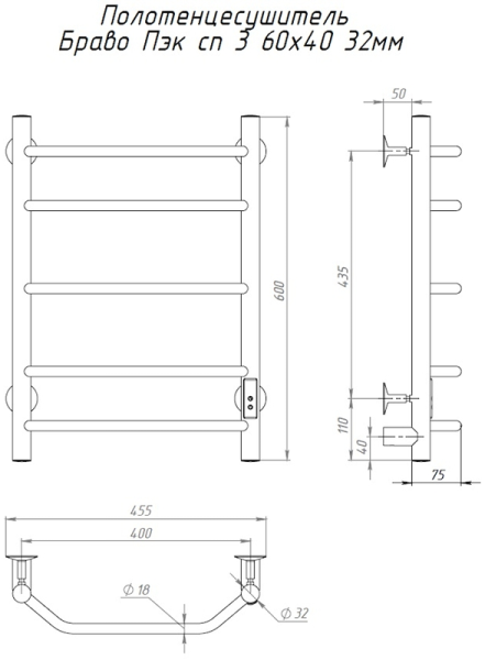 Электрический полотенцесушитель Тругор Браво Пэк сп 3 60x40см хром БравоПэксп3/604032