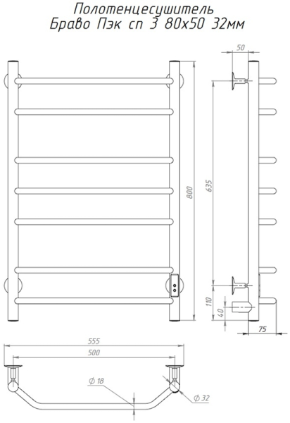 Электрический полотенцесушитель Тругор Браво Пэк сп 3 80x50см хром БравоПэксп3/805032