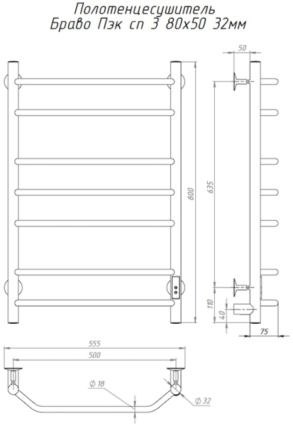 Электрический полотенцесушитель Тругор Браво Пэк сп 3 П с полкой 80x50см хром БравоПэксп3П/805032