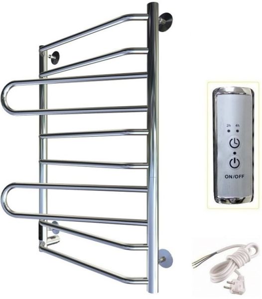 ПЭК — Полотенцесушитель электрический кабельный. Изделие производится из нержавеющей стали AISI 201. Вертикальные трубы d -32 мм., для горизонтальных вставок используется труба d — 18 мм.Нагревательным элементом в полотенцесушителе является греющий кабель — аналог «теплого пола», кабель заправляется внутрь каждой трубы и передает тепло на поверхность изделия. Во включенном состоянии постоянно поддерживается температура 50-600.Экономичность: Полотенцесушитель снабжен панелью управления. Кнопка включения/выключения и таймер на 2 часа и 4 часа, который позволяет включать изделие на ограниченное время. Эта функция дает возможность экономить электричество.Мощность электрического прибора порядка 60W при стоимости 1 кВт — 5 руб несложно посчитать: 60W х 24 = 1,5 кВт в сутки. Стоимость эксплуатации изделия за сутки 1,5 кВт х 5 руб. = 7,5 руб. Максимальный расход электричества за месяц примерно 225 руб. При условии если сушка работает круглосуточно.Удобство монтажа: Полотенцесушитель крепится к стене на четыре держателя. Универсальное исполнение изделия позволяет подключить его, как справа, так и слева.Скрытое подключение: Благодаря приваренным в нижней части вертикальных труб двум распаячным коробкам, в которых соединяется электропроводка, возможно скрытое подключение к электричеству слева и справа.Подключение в розетку: В комплекте также имеется шнур с вилкой, который будет необходим при подключении к розетке.Панель включения:РЕЖИМ №1 — постоянный нагревРЕЖИМ №2 — работа в течение 2 часов с последующим отключением.РЕЖИМ №3 — работа в течение 4 часов с последующим отключением.