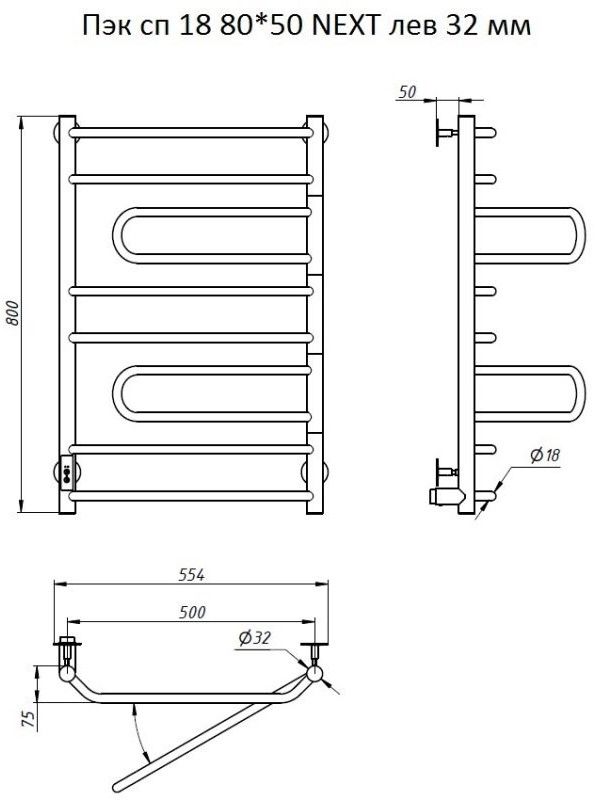 Электрический полотенцесушитель Тругор Next Пэк сп 80x50см левый хром Пэксп18/8050лев32 купить