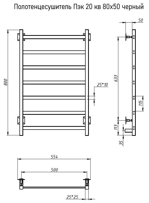 Электрический полотенцесушитель Тругор Пэк 20кв 80x50см чёрный Пэк20кв/8050черный купить