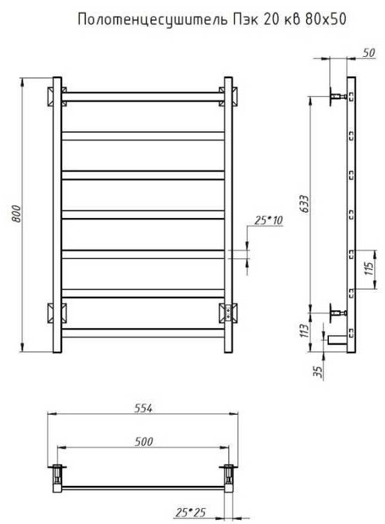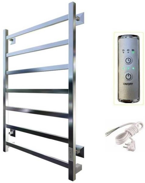 Внимание! Для скрытого монтажа электропроводки необходимо приобрести комплект скрытого подключения. Полотенцесушитель электрический комплектуется ТЭНом с терморегулятором и таймером. Изделие производится из нержавеющей стали AISI 201. Вертикальные трубы d -32 мм., для горизонтальных вставок используется труба d — 18 мм. Нагревательным элементом в полотенцесушителе является ТЭН. Полотенцесушитель заполнен бытовым антифризом.Экономичность: ТЭН нагревает антифриз до нужной температуры и выключается, далее при остывании полотенцесушителя он включается опять. Таким образом он работает не постоянно, и получается, что ТЭН потребляет электричество не 300 Вт, а порядка 100 — 150 Вт.Мощность электрического прибора порядка 100 Вт при стоимости 1 Вт — 5 руб несложно посчитать: 100Вт х 24 = 2,4 кВт в сутки. Стоимость эксплуатации изделия за сутки 2,4 кВт х 5 руб. = 12 руб. При максимальной температуре расход электричества за 30 дней составит порядка 360 руб. При условии если сушка работает круглосуточно на максимальной температуре.Удобство монтажа: Полотенцесушитель крепится к стене на четыре держателя. Изначально ТЭН не установлен в полотенцесушитель для безопасной транспортировки, его можно установить, как справа, так и слева предварительно перевернув полотенцесушитель вверх ногами и выкрутив заглушку с нужной стороны на место в которое установится ТЭН.Примечание. Внимательно изучите инструкцию по установке ТЭНа!Скрытое подключение: Для скрытого монтажа электропроводки необходимо приобрести комплект скрытого подключения.Подключение в розетку: В комплекте с ТЭНом имеется шнур с вилкой, который будет необходим при подключении к розетке.