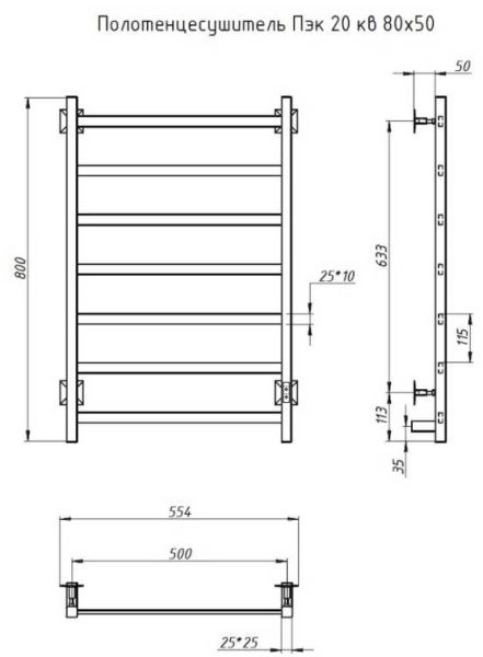 Электрический полотенцесушитель Тругор Пэк 20кв 80x50см хром Пэк20кв/8050