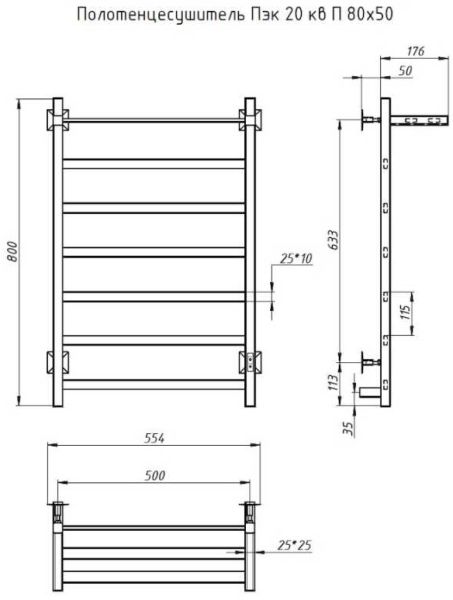 Электрический полотенцесушитель Тругор Пэк 20кв П с полкой 80x50см хром Пэк20квП/8050