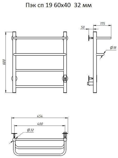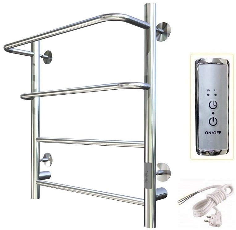 ПЭК — Полотенцесушитель электрический кабельный. Изделие производится из нержавеющей стали AISI 201. Вертикальные трубы d -32 мм., для горизонтальных вставок используется труба d — 18 мм.Нагревательным элементом в полотенцесушителе является греющий кабель — аналог «теплого пола», кабель заправляется внутрь каждой трубы и передает тепло на поверхность изделия. Во включенном состоянии постоянно поддерживается температура 50-600.Экономичность: Полотенцесушитель снабжен панелью управления. Кнопка включения/выключения и таймер на 2 часа и 4 часа, который позволяет включать изделие на ограниченное время. Эта функция дает возможность экономить электричество.Мощность электрического прибора порядка 60W при стоимости 1 кВт — 5 руб несложно посчитать: 60W х 24 = 1,5 кВт в сутки. Стоимость эксплуатации изделия за сутки 1,5 кВт х 5 руб. = 7,5 руб. Максимальный расход электричества за месяц примерно 225 руб. При условии если сушка работает круглосуточно.Удобство монтажа: Полотенцесушитель крепится к стене на четыре держателя. Универсальное исполнение изделия позволяет подключить его, как справа, так и слева.Скрытое подключение: Благодаря приваренным в нижней части вертикальных труб двум распаячным коробкам, в которых соединяется электропроводка, возможно скрытое подключение к электричеству слева и справа.Подключение в розетку: В комплекте также имеется шнур с вилкой, который будет необходим при подключении к розетке.Панель включения:РЕЖИМ №1 — постоянный нагревРЕЖИМ №2 — работа в течение 2 часов с последующим отключением.РЕЖИМ №3 — работа в течение 4 часов с последующим отключением.