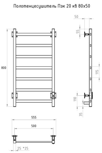 Электрический полотенцесушитель Тругор Пэк сп 20кв 80x50см чёрный Пэксп20кв/8050черныйВГП