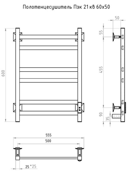 Электрический полотенцесушитель Тругор Пэк сп 21кв 60x50см чёрный Пэксп21кв/6050черныйВГП
