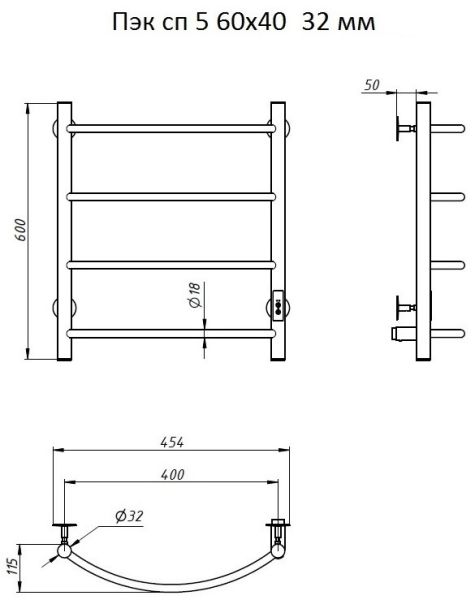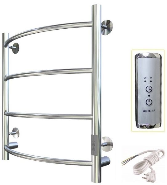 ПЭК — Полотенцесушитель электрический кабельный. Изделие производится из нержавеющей стали AISI 201. Вертикальные трубы d -32 мм., для горизонтальных вставок используется труба d — 18 мм.Нагревательным элементом в полотенцесушителе является греющий кабель — аналог «теплого пола», кабель заправляется внутрь каждой трубы и передает тепло на поверхность изделия. Во включенном состоянии постоянно поддерживается температура 50-600.Экономичность: Полотенцесушитель снабжен панелью управления. Кнопка включения/выключения и таймер на 2 часа и 4 часа, который позволяет включать изделие на ограниченное время. Эта функция дает возможность экономить электричество.Мощность электрического прибора порядка 60W при стоимости 1 кВт — 5 руб несложно посчитать: 60W х 24 = 1,5 кВт в сутки. Стоимость эксплуатации изделия за сутки 1,5 кВт х 5 руб. = 7,5 руб. Максимальный расход электричества за месяц примерно 225 руб. При условии если сушка работает круглосуточно.Удобство монтажа: Полотенцесушитель крепится к стене на четыре держателя. Универсальное исполнение изделия позволяет подключить его, как справа, так и слева.Скрытое подключение: Благодаря приваренным в нижней части вертикальных труб двум распаячным коробкам, в которых соединяется электропроводка, возможно скрытое подключение к электричеству слева и справа.Подключение в розетку: В комплекте также имеется шнур с вилкой, который будет необходим при подключении к розетке.Панель включения:РЕЖИМ №1 — постоянный нагревРЕЖИМ №2 — работа в течение 2 часов с последующим отключением.РЕЖИМ №3 — работа в течение 4 часов с последующим отключением.
