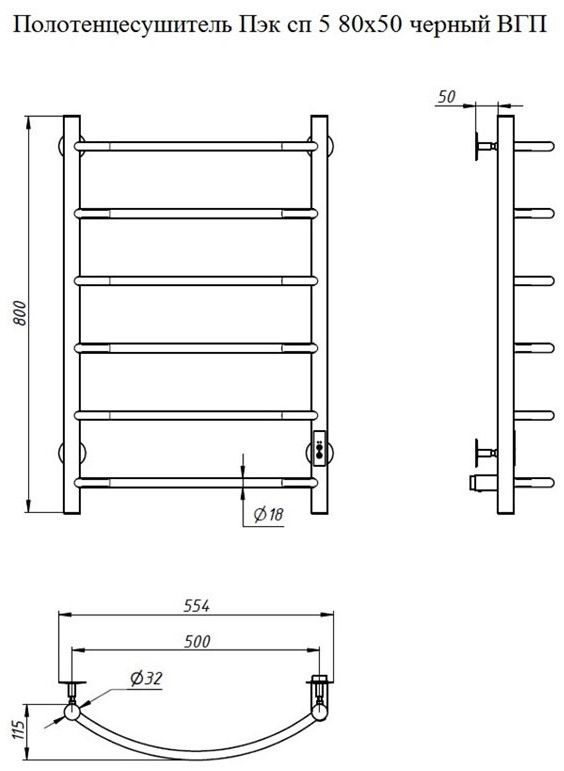 Электрический полотенцесушитель Тругор Пэк сп 5 80x50см белый Пэксп5/8050белыйВГП
