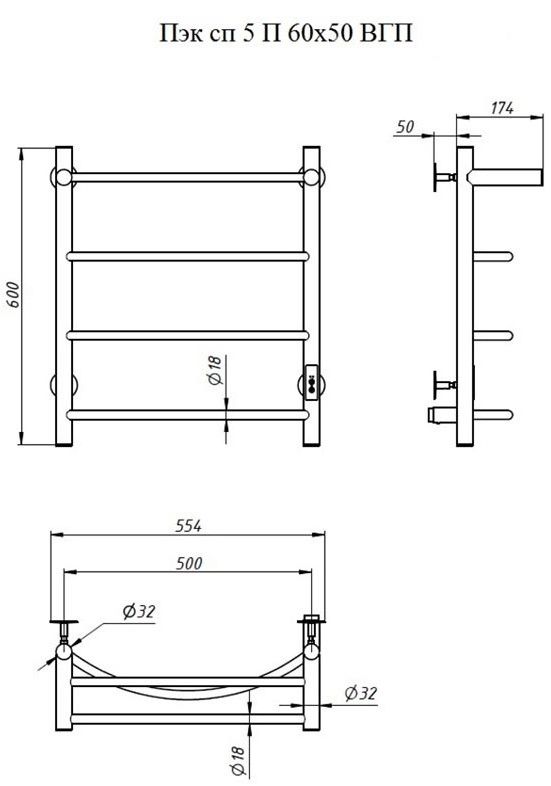 Электрический полотенцесушитель Тругор Пэк сп 5 П с полкой 60x50см чёрный Пэксп5П/6050черныйВГП купить