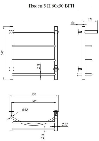 ПЭК — Полотенцесушитель электрический кабельный. Изделие производится из нержавеющей стали AISI 201. Вертикальные трубы d -32 мм., для горизонтальных вставок используется труба d — 18 мм.Нагревательным элементом в полотенцесушителе является греющий кабель — аналог «теплого пола», кабель заправляется внутрь каждой трубы и передает тепло на поверхность изделия. Во включенном состоянии постоянно поддерживается температура 50-600.Экономичность: Полотенцесушитель снабжен панелью управления. Кнопка включения/выключения и таймер на 2 часа и 4 часа, который позволяет включать изделие на ограниченное время. Эта функция дает возможность экономить электричество.Мощность электрического прибора порядка 60W при стоимости 1 кВт — 5 руб несложно посчитать: 60W х 24 = 1,5 кВт в сутки. Стоимость эксплуатации изделия за сутки 1,5 кВт х 5 руб. = 7,5 руб. Максимальный расход электричества за месяц примерно 225 руб. При условии если сушка работает круглосуточно.Удобство монтажа: Полотенцесушитель крепится к стене на четыре держателя. Универсальное исполнение изделия позволяет подключить его, как справа, так и слева.Скрытое подключение: Благодаря приваренным в нижней части вертикальных труб двум распаячным коробкам, в которых соединяется электропроводка, возможно скрытое подключение к электричеству слева и справа.Подключение в розетку: В комплекте также имеется шнур с вилкой, который будет необходим при подключении к розетке.Панель включения:РЕЖИМ №1 — постоянный нагревРЕЖИМ №2 — работа в течение 2 часов с последующим отключением.РЕЖИМ №3 — работа в течение 4 часов с последующим отключением.