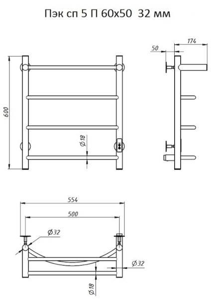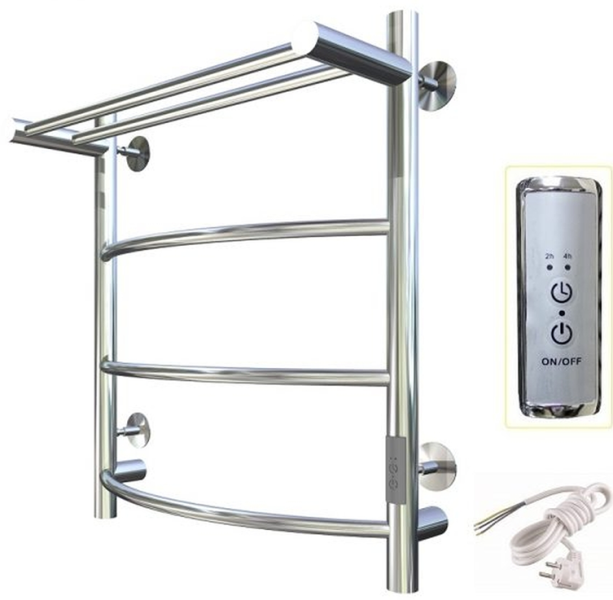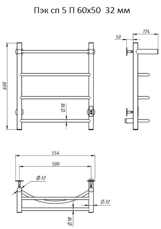 ПЭК — Полотенцесушитель электрический кабельный. Изделие производится из нержавеющей стали AISI 201. Вертикальные трубы d -32 мм., для горизонтальных вставок используется труба d — 18 мм.Нагревательным элементом в полотенцесушителе является греющий кабель — аналог «теплого пола», кабель заправляется внутрь каждой трубы и передает тепло на поверхность изделия. Во включенном состоянии постоянно поддерживается температура 50-600.Экономичность: Полотенцесушитель снабжен панелью управления. Кнопка включения/выключения и таймер на 2 часа и 4 часа, который позволяет включать изделие на ограниченное время. Эта функция дает возможность экономить электричество.Мощность электрического прибора порядка 60W при стоимости 1 кВт — 5 руб несложно посчитать: 60W х 24 = 1,5 кВт в сутки. Стоимость эксплуатации изделия за сутки 1,5 кВт х 5 руб. = 7,5 руб. Максимальный расход электричества за месяц примерно 225 руб. При условии если сушка работает круглосуточно.Удобство монтажа: Полотенцесушитель крепится к стене на четыре держателя. Универсальное исполнение изделия позволяет подключить его, как справа, так и слева.Скрытое подключение: Благодаря приваренным в нижней части вертикальных труб двум распаячным коробкам, в которых соединяется электропроводка, возможно скрытое подключение к электричеству слева и справа.Подключение в розетку: В комплекте также имеется шнур с вилкой, который будет необходим при подключении к розетке.Панель включения:РЕЖИМ №1 — постоянный нагревРЕЖИМ №2 — работа в течение 2 часов с последующим отключением.РЕЖИМ №3 — работа в течение 4 часов с последующим отключением.