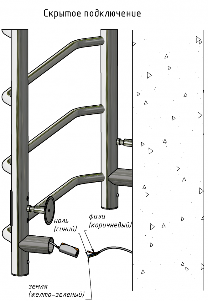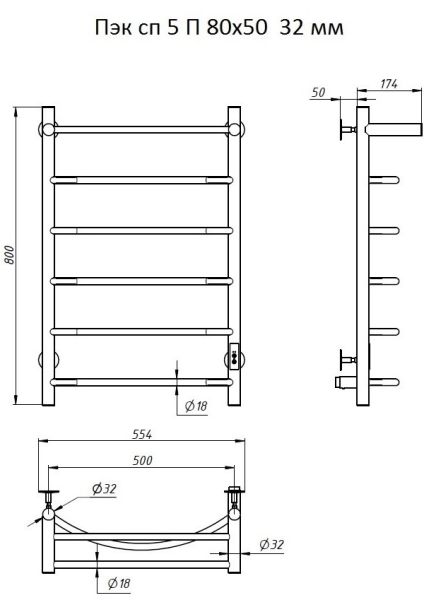 ПЭК — Полотенцесушитель электрический кабельный. Изделие производится из нержавеющей стали AISI 201. Вертикальные трубы d -32 мм., для горизонтальных вставок используется труба d — 18 мм.Нагревательным элементом в полотенцесушителе является греющий кабель — аналог «теплого пола», кабель заправляется внутрь каждой трубы и передает тепло на поверхность изделия. Во включенном состоянии постоянно поддерживается температура 50-600.Экономичность: Полотенцесушитель снабжен панелью управления. Кнопка включения/выключения и таймер на 2 часа и 4 часа, который позволяет включать изделие на ограниченное время. Эта функция дает возможность экономить электричество.Мощность электрического прибора порядка 60W при стоимости 1 кВт — 5 руб несложно посчитать: 60W х 24 = 1,5 кВт в сутки. Стоимость эксплуатации изделия за сутки 1,5 кВт х 5 руб. = 7,5 руб. Максимальный расход электричества за месяц примерно 225 руб. При условии если сушка работает круглосуточно.Удобство монтажа: Полотенцесушитель крепится к стене на четыре держателя. Универсальное исполнение изделия позволяет подключить его, как справа, так и слева.Скрытое подключение: Благодаря приваренным в нижней части вертикальных труб двум распаячным коробкам, в которых соединяется электропроводка, возможно скрытое подключение к электричеству слева и справа.Подключение в розетку: В комплекте также имеется шнур с вилкой, который будет необходим при подключении к розетке.Панель включения:РЕЖИМ №1 — постоянный нагревРЕЖИМ №2 — работа в течение 2 часов с последующим отключением.РЕЖИМ №3 — работа в течение 4 часов с последующим отключением.